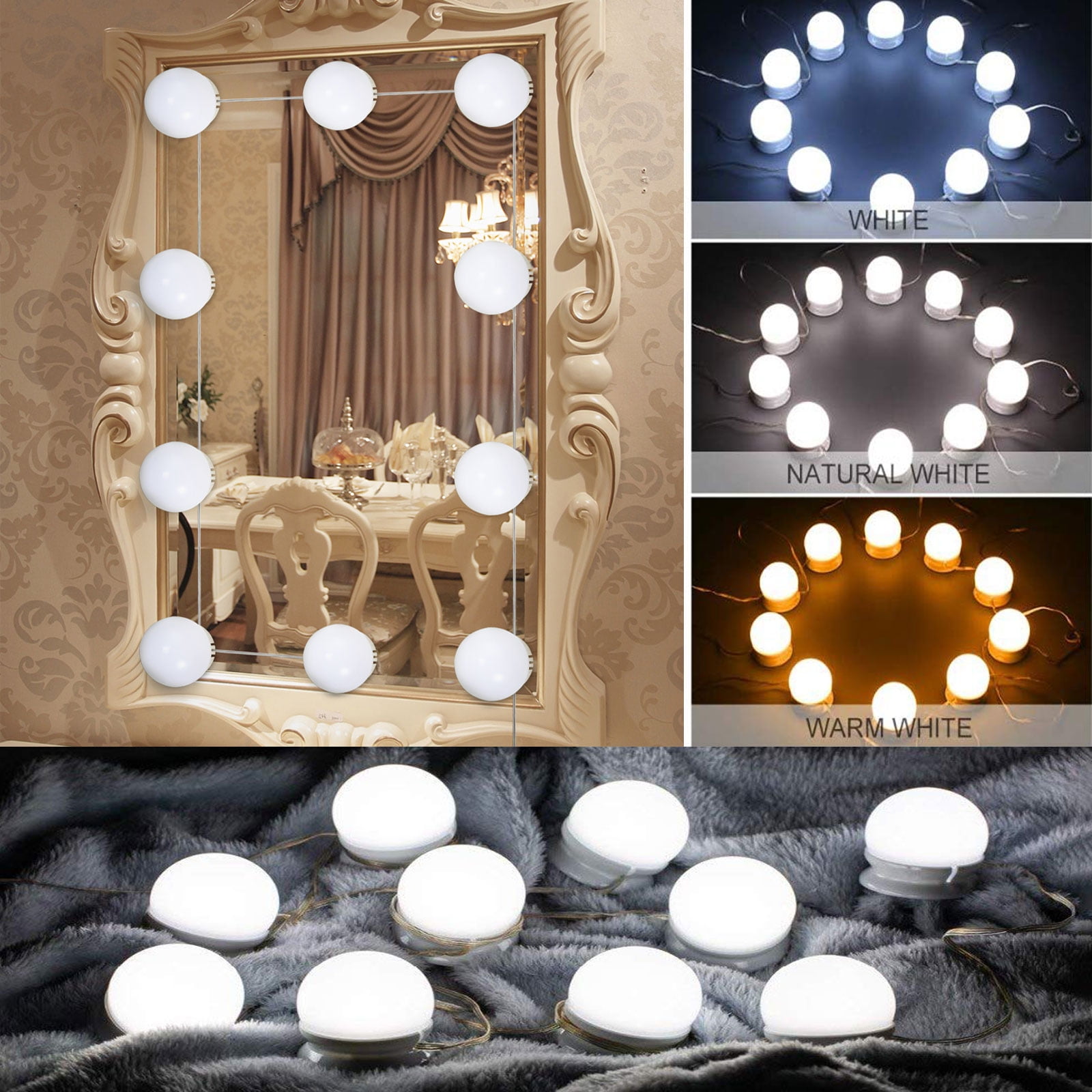 Hollywood style led vanity mirror lights kit with 10 dimmable light bulbs for makeup dressing table and power supply plug in lighting fixture strip, vanity mirror light, white (no mirror included) 4.5 out of 5 stars.